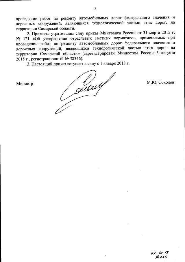 "ОБ УТВЕРЖДЕНИИ ОТРАСЛЕВЫХ СМЕТНЫХ НОРМАТИВОВ, ПРИМЕНЯЕМЫХ ПРИ ПРОВЕДЕНИИ РАБОТ ПО РЕМОНТУ АВТОМОБИЛЬНЫХ ДОРОГ ФЕДЕРАЛЬНОГО ЗНАЧЕНИЯ И ДОРОЖНЫХ СООРУЖЕНИЙ, ЯВЛЯЮЩИХСЯ ТЕХНОЛОГИЧЕСКОЙ ЧАСТЬЮ ЭТИХ ДОРОГ, НА ТЕРРИТОРИИ САМАРСКОЙ ОБЛАСТИ И О ПРИЗНАНИИ УТРАТИВШИМ СИЛУ ПРИКАЗА МИНТРАНСА РОССИИ ОТ 31 МАРТА 2015 Г. N 121 "ОБ УТВЕРЖДЕНИИ ОТРАСЛЕВЫХ СМЕТНЫХ НОРМАТИВОВ, ПРИМЕНЯЕМЫХ ПРИ ПРОВЕДЕНИИ РАБОТ ПО РЕМОНТУ АВТОМОБИЛЬНЫХ ДОРОГ ФЕДЕРАЛЬНОГО ЗНАЧЕНИЯ И ДОРОЖНЫХ СООРУЖЕНИЙ, ЯВЛЯЮЩИХСЯ ТЕХНОЛОГИЧЕСКОЙ ЧАСТЬЮ ЭТИХ ДОРОГ НА ТЕРРИТОРИИ САМАРСКОЙ ОБЛАСТИ"