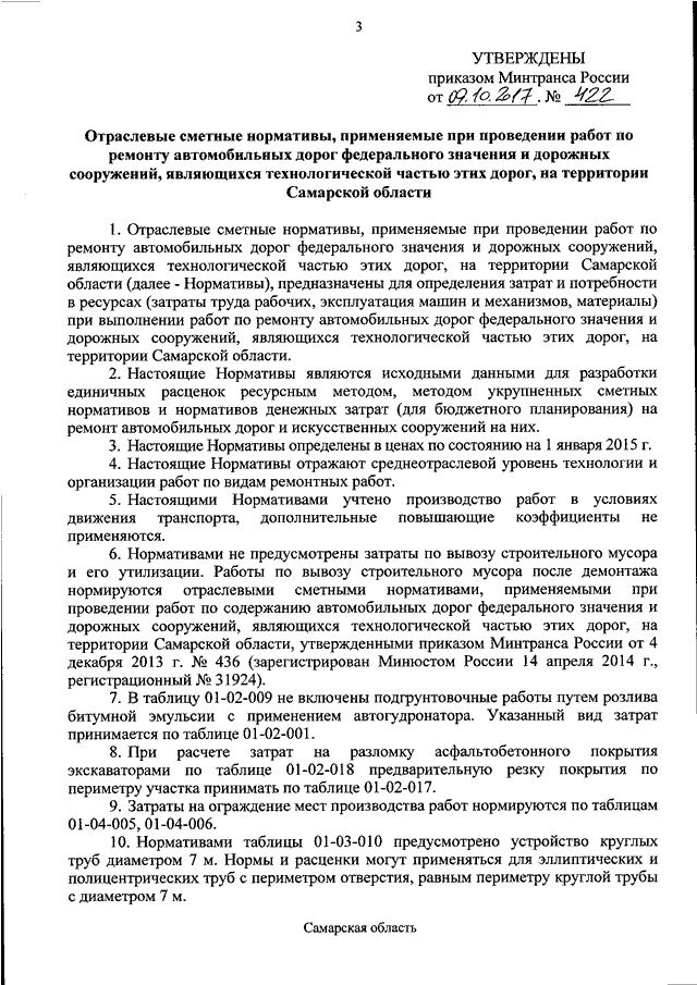 "ОБ УТВЕРЖДЕНИИ ОТРАСЛЕВЫХ СМЕТНЫХ НОРМАТИВОВ, ПРИМЕНЯЕМЫХ ПРИ ПРОВЕДЕНИИ РАБОТ ПО РЕМОНТУ АВТОМОБИЛЬНЫХ ДОРОГ ФЕДЕРАЛЬНОГО ЗНАЧЕНИЯ И ДОРОЖНЫХ СООРУЖЕНИЙ, ЯВЛЯЮЩИХСЯ ТЕХНОЛОГИЧЕСКОЙ ЧАСТЬЮ ЭТИХ ДОРОГ, НА ТЕРРИТОРИИ САМАРСКОЙ ОБЛАСТИ И О ПРИЗНАНИИ УТРАТИВШИМ СИЛУ ПРИКАЗА МИНТРАНСА РОССИИ ОТ 31 МАРТА 2015 Г. N 121 "ОБ УТВЕРЖДЕНИИ ОТРАСЛЕВЫХ СМЕТНЫХ НОРМАТИВОВ, ПРИМЕНЯЕМЫХ ПРИ ПРОВЕДЕНИИ РАБОТ ПО РЕМОНТУ АВТОМОБИЛЬНЫХ ДОРОГ ФЕДЕРАЛЬНОГО ЗНАЧЕНИЯ И ДОРОЖНЫХ СООРУЖЕНИЙ, ЯВЛЯЮЩИХСЯ ТЕХНОЛОГИЧЕСКОЙ ЧАСТЬЮ ЭТИХ ДОРОГ НА ТЕРРИТОРИИ САМАРСКОЙ ОБЛАСТИ"