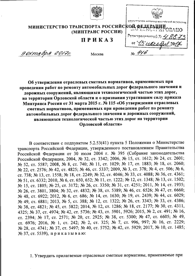 ПРИКАЗ Минтранса РФ от 09.10.2017 N 416