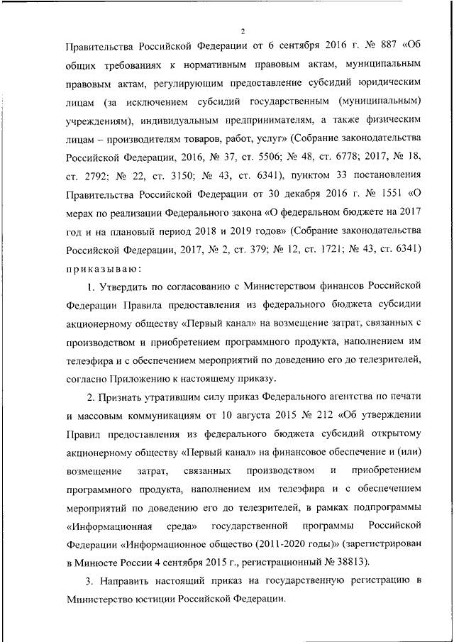 СУБСИДИИ АКЦИОНЕРНОМУ ОБЩЕСТВУ "ПЕРВЫЙ КАНАЛ" НА ВОЗМЕЩЕНИЕ