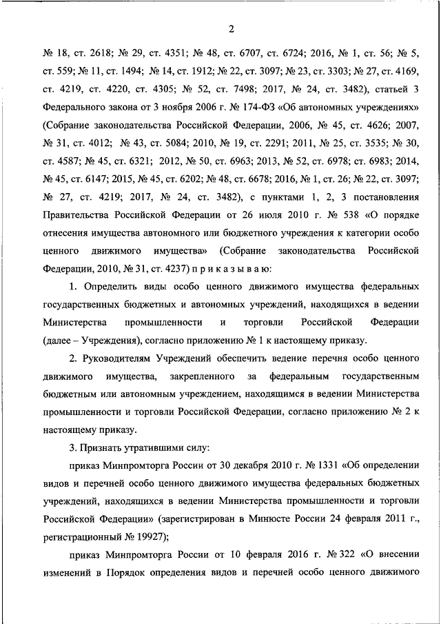 "ОБ ОПРЕДЕЛЕНИИ ВИДОВ И ПЕРЕЧНЕЙ ОСОБО ЦЕННОГО ДВИЖИМОГО ИМУЩЕСТВА ФЕДЕРАЛЬНЫХ ГОСУДАРСТВЕННЫХ БЮДЖЕТНЫХ И АВТОНОМНЫХ УЧРЕЖДЕНИЙ, НАХОДЯЩИХСЯ В ВЕДЕНИИ МИНИСТЕРСТВА ПРОМЫШЛЕННОСТИ И ТОРГОВЛИ РОССИЙСКОЙ ФЕДЕРАЦИИ"