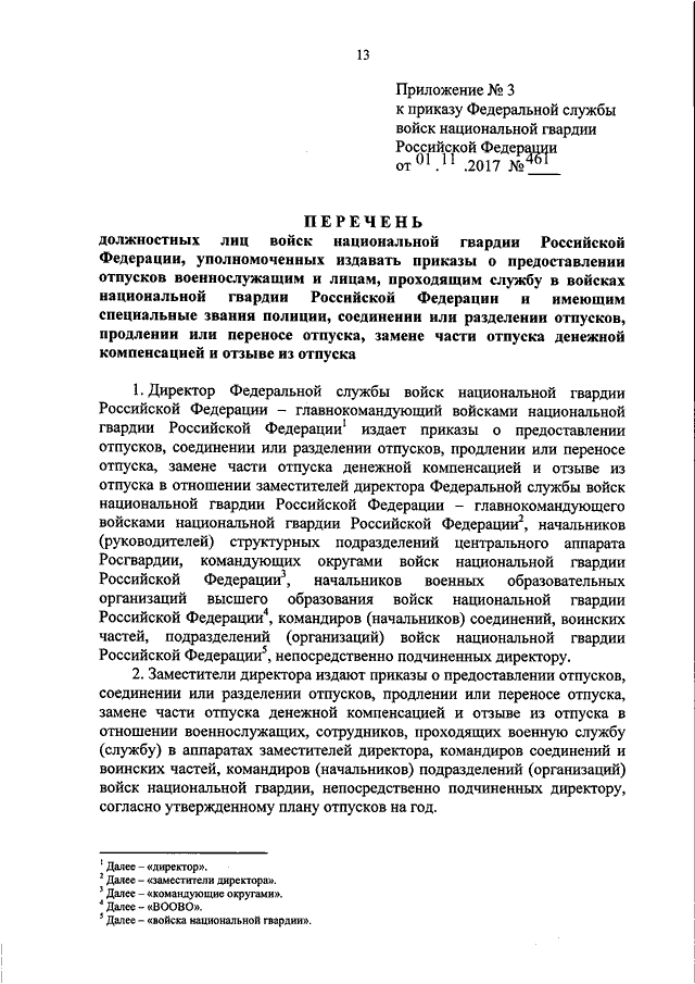 ПРИКАЗ Росгвардии от 01.11.2017 N 461