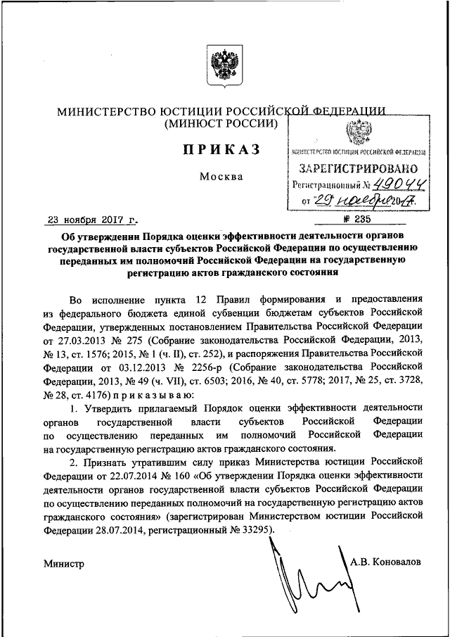 ПРИКАЗ Минюста РФ от 23.11.2017 N 235