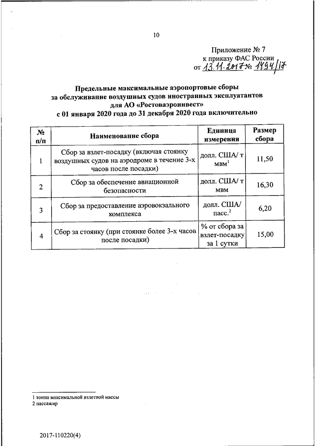 "ОБ УТВЕРЖДЕНИИ ТАРИФОВ (СБОРОВ) НА УСЛУГИ В АЭРОПОРТУ "ПЛАТОВ" (Г. РОСТОВ-НА-ДОНУ), ОКАЗЫВАЕМЫЕ АО "РОСТОВАЭРОИНВЕСТ"