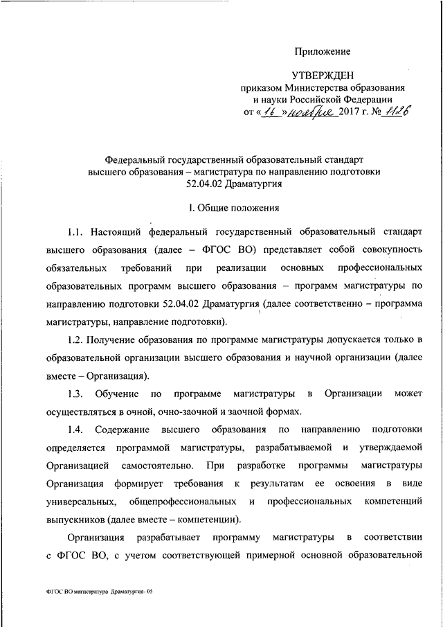 ПРИКАЗ Минобрнауки РФ от 16.11.2017 N 1126
