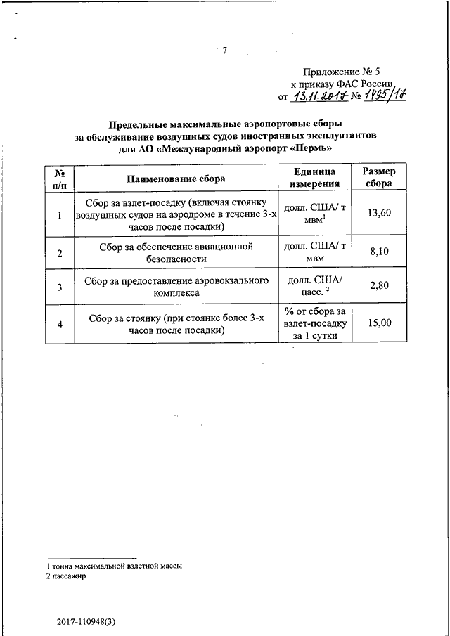 "ОБ УТВЕРЖДЕНИИ ТАРИФОВ (СБОРОВ) НА УСЛУГИ В АЭРОПОРТУ Г. ПЕРМЬ, ОКАЗЫВАЕМЫЕ АО "МЕЖДУНАРОДНЫЙ АЭРОПОРТ "ПЕРМЬ"