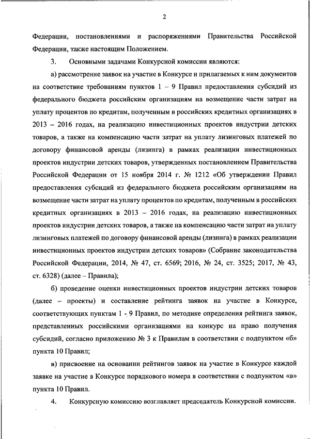 "О КОНКУРСНОЙ КОМИССИИ ПО ПРОВЕДЕНИЮ КОНКУРСНОГО ОТБОРА НА ПРАВО ПОЛУЧЕНИЯ СУБСИДИЙ ИЗ ФЕДЕРАЛЬНОГО БЮДЖЕТА РОССИЙСКИМИ ОРГАНИЗАЦИЯМИ НА ВОЗМЕЩЕНИЕ ЧАСТИ ЗАТРАТ НА УПЛАТУ ПРОЦЕНТОВ ПО КРЕДИТАМ, ПОЛУЧЕННЫМ В РОССИЙСКИХ КРЕДИТНЫХ ОРГАНИЗАЦИЯХ В 2013 - 2016 ГОДАХ, НА РЕАЛИЗАЦИЮ ИНВЕСТИЦИОННЫХ ПРОЕКТОВ ИНДУСТРИИ ДЕТСКИХ ТОВАРОВ, А ТАКЖЕ НА КОМПЕНСАЦИЮ ЧАСТИ ЗАТРАТ НА УПЛАТУ ЛИЗИНГОВЫХ ПЛАТЕЖЕЙ ПО ДОГОВОРУ ФИНАНСОВОЙ АРЕНДЫ (ЛИЗИНГА) В РАМКАХ РЕАЛИЗАЦИИ ИНВЕСТИЦИОННЫХ ПРОЕКТОВ ИНДУСТРИИ ДЕТСКИХ ТОВАРОВ"