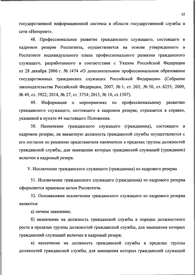 "ОБ УТВЕРЖДЕНИИ ПОЛОЖЕНИЯ О КАДРОВОМ РЕЗЕРВЕ ФЕДЕРАЛЬНОЙ СЛУЖБЫ ПО ИНТЕЛЛЕКТУАЛЬНОЙ СОБСТВЕННОСТИ"