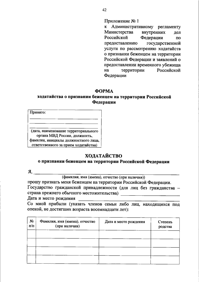 "ОБ УТВЕРЖДЕНИИ АДМИНИСТРАТИВНОГО РЕГЛАМЕНТА МИНИСТЕРСТВА ВНУТРЕННИХ ДЕЛ РОССИЙСКОЙ ФЕДЕРАЦИИ ПО ПРЕДОСТАВЛЕНИЮ ГОСУДАРСТВЕННОЙ УСЛУГИ ПО РАССМОТРЕНИЮ ХОДАТАЙСТВ О ПРИЗНАНИИ БЕЖЕНЦЕМ НА ТЕРРИТОРИИ РОССИЙСКОЙ ФЕДЕРАЦИИ И ЗАЯВЛЕНИЙ О ПРЕДОСТАВЛЕНИИ ВРЕМЕННОГО УБЕЖИЩА НА ТЕРРИТОРИИ РОССИЙСКОЙ ФЕДЕРАЦИИ"