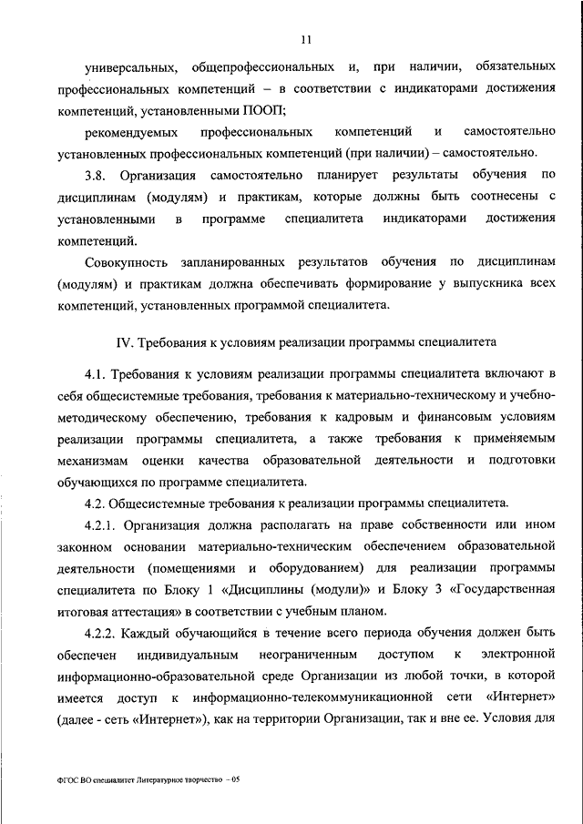 "ОБ УТВЕРЖДЕНИИ ФЕДЕРАЛЬНОГО ГОСУДАРСТВЕННОГО ОБРАЗОВАТЕЛЬНОГО СТАНДАРТА ВЫСШЕГО ОБРАЗОВАНИЯ - СПЕЦИАЛИТЕТ ПО СПЕЦИАЛЬНОСТИ 52.05.04 ЛИТЕРАТУРНОЕ ТВОРЧЕСТВО"