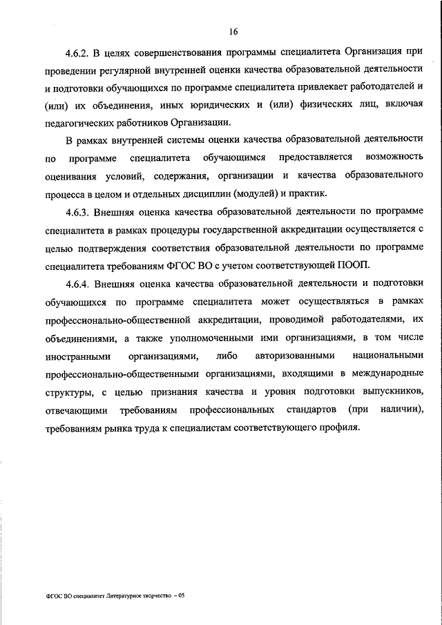 "ОБ УТВЕРЖДЕНИИ ФЕДЕРАЛЬНОГО ГОСУДАРСТВЕННОГО ОБРАЗОВАТЕЛЬНОГО СТАНДАРТА ВЫСШЕГО ОБРАЗОВАНИЯ - СПЕЦИАЛИТЕТ ПО СПЕЦИАЛЬНОСТИ 52.05.04 ЛИТЕРАТУРНОЕ ТВОРЧЕСТВО"