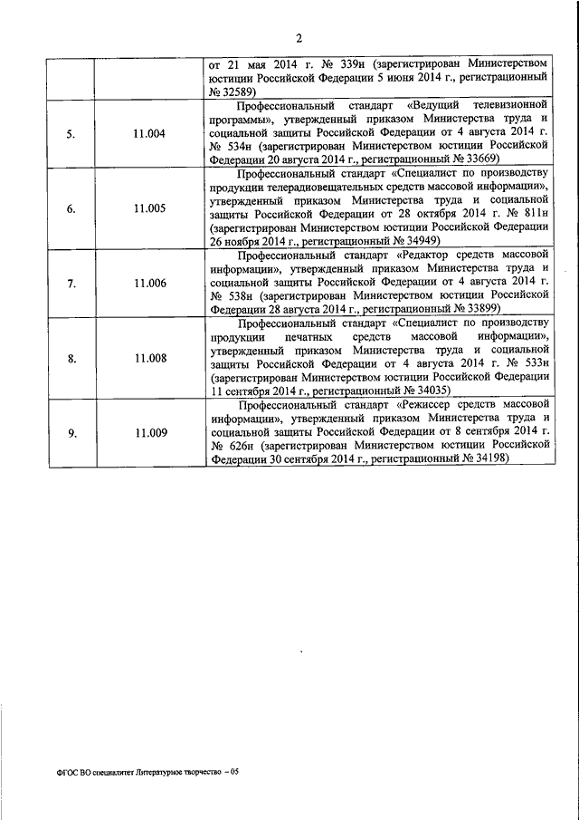 "ОБ УТВЕРЖДЕНИИ ФЕДЕРАЛЬНОГО ГОСУДАРСТВЕННОГО ОБРАЗОВАТЕЛЬНОГО СТАНДАРТА ВЫСШЕГО ОБРАЗОВАНИЯ - СПЕЦИАЛИТЕТ ПО СПЕЦИАЛЬНОСТИ 52.05.04 ЛИТЕРАТУРНОЕ ТВОРЧЕСТВО"