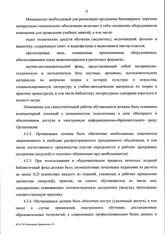 "ОБ УТВЕРЖДЕНИИ ФЕДЕРАЛЬНОГО ГОСУДАРСТВЕННОГО ОБРАЗОВАТЕЛЬНОГО СТАНДАРТА ВЫСШЕГО ОБРАЗОВАНИЯ - БАКАЛАВРИАТ ПО НАПРАВЛЕНИЮ ПОДГОТОВКИ 52.03.06 ДРАМАТУРГИЯ"