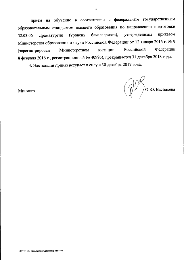 "ОБ УТВЕРЖДЕНИИ ФЕДЕРАЛЬНОГО ГОСУДАРСТВЕННОГО ОБРАЗОВАТЕЛЬНОГО СТАНДАРТА ВЫСШЕГО ОБРАЗОВАНИЯ - БАКАЛАВРИАТ ПО НАПРАВЛЕНИЮ ПОДГОТОВКИ 52.03.06 ДРАМАТУРГИЯ"