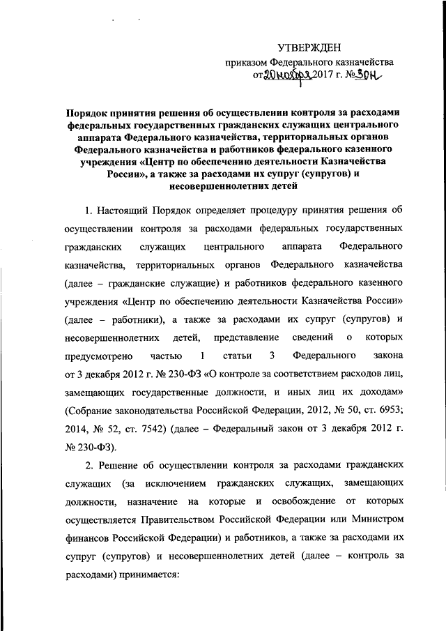 ПРИКАЗ Федерального казначейства от 20.11.2017 N 30н