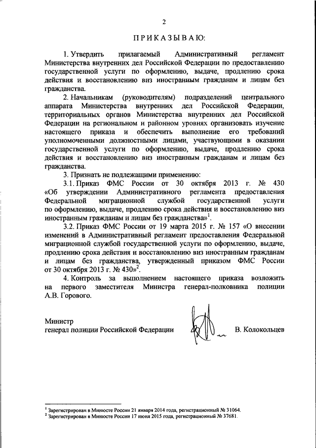 "ОБ УТВЕРЖДЕНИИ АДМИНИСТРАТИВНОГО РЕГЛАМЕНТА МИНИСТЕРСТВА ВНУТРЕННИХ ДЕЛ РОССИЙСКОЙ ФЕДЕРАЦИИ ПО ПРЕДОСТАВЛЕНИЮ ГОСУДАРСТВЕННОЙ УСЛУГИ ПО ОФОРМЛЕНИЮ, ВЫДАЧЕ, ПРОДЛЕНИЮ СРОКА ДЕЙСТВИЯ И ВОССТАНОВЛЕНИЮ ВИЗ ИНОСТРАННЫМ ГРАЖДАНАМ И ЛИЦАМ БЕЗ ГРАЖДАНСТВА"