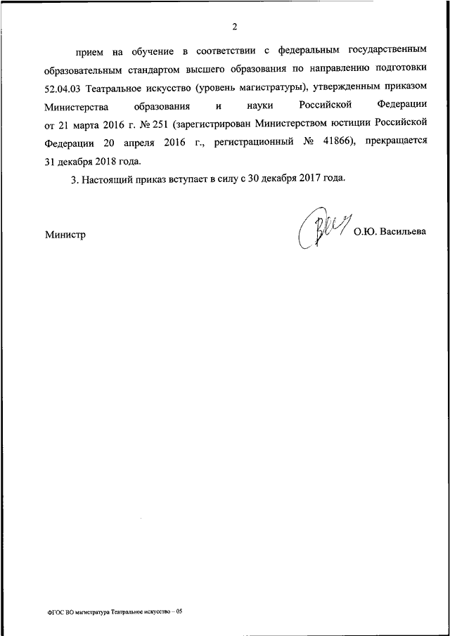"ОБ УТВЕРЖДЕНИИ ФЕДЕРАЛЬНОГО ГОСУДАРСТВЕННОГО ОБРАЗОВАТЕЛЬНОГО СТАНДАРТА ВЫСШЕГО ОБРАЗОВАНИЯ - МАГИСТРАТУРА ПО НАПРАВЛЕНИЮ ПОДГОТОВКИ 52.04.03 ТЕАТРАЛЬНОЕ ИСКУССТВО"