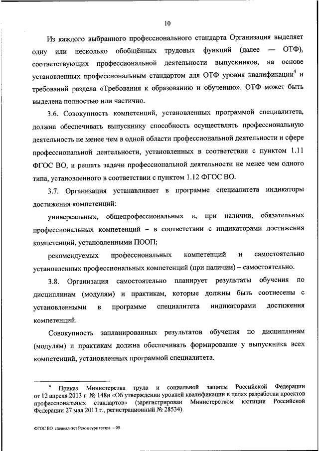 "ОБ УТВЕРЖДЕНИИ ФЕДЕРАЛЬНОГО ГОСУДАРСТВЕННОГО ОБРАЗОВАТЕЛЬНОГО СТАНДАРТА ВЫСШЕГО ОБРАЗОВАНИЯ - СПЕЦИАЛИТЕТ ПО СПЕЦИАЛЬНОСТИ 52.05.02 РЕЖИССУРА ТЕАТРА"