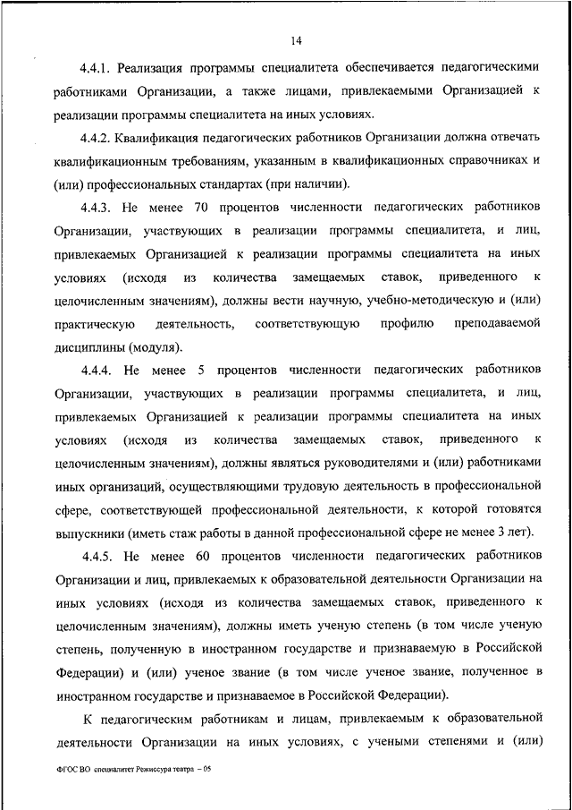 "ОБ УТВЕРЖДЕНИИ ФЕДЕРАЛЬНОГО ГОСУДАРСТВЕННОГО ОБРАЗОВАТЕЛЬНОГО СТАНДАРТА ВЫСШЕГО ОБРАЗОВАНИЯ - СПЕЦИАЛИТЕТ ПО СПЕЦИАЛЬНОСТИ 52.05.02 РЕЖИССУРА ТЕАТРА"