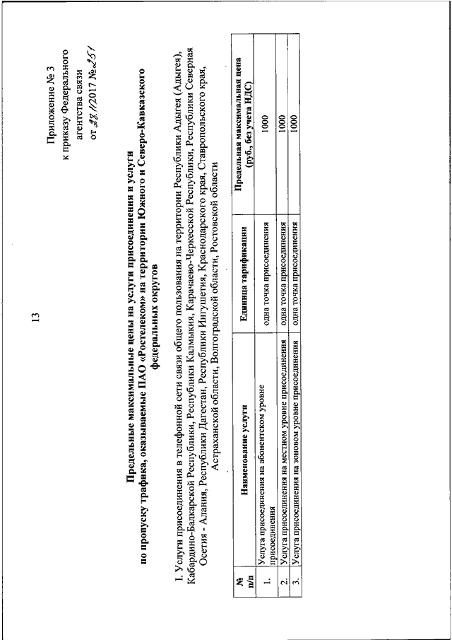 "ОБ УСТАНОВЛЕНИИ ПРЕДЕЛЬНЫХ МАКСИМАЛЬНЫХ ЦЕН НА УСЛУГИ ПРИСОЕДИНЕНИЯ И УСЛУГИ ПО ПРОПУСКУ ТРАФИКА, ОКАЗЫВАЕМЫЕ ПУБЛИЧНЫМ АКЦИОНЕРНЫМ ОБЩЕСТВОМ МЕЖДУГОРОДНОЙ И МЕЖДУНАРОДНОЙ ЭЛЕКТРИЧЕСКОЙ СВЯЗИ "РОСТЕЛЕКОМ"