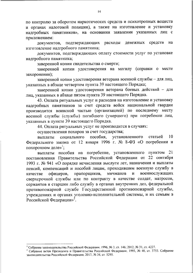 "ОБ УТВЕРЖДЕНИИ ПОРЯДКА ПОГРЕБЕНИЯ ПОГИБШИХ (УМЕРШИХ) ВОЕННОСЛУЖАЩИХ ВОЙСК НАЦИОНАЛЬНОЙ ГВАРДИИ РОССИЙСКОЙ ФЕДЕРАЦИИ, ЛИЦ, ПРОХОДЯЩИХ СЛУЖБУ В ВОЙСКАХ НАЦИОНАЛЬНОЙ ГВАРДИИ РОССИЙСКОЙ ФЕДЕРАЦИИ И ИМЕЮЩИХ СПЕЦИАЛЬНЫЕ ЗВАНИЯ ПОЛИЦИИ, ГРАЖДАН, ПРИЗВАННЫХ НА ВОЕННЫЕ СБОРЫ, ПРОВОДИМЫЕ В ВОЙСКАХ НАЦИОНАЛЬНОЙ ГВАРДИИ РОССИЙСКОЙ ФЕДЕРАЦИИ, А ТАКЖЕ ОТДЕЛЬНОЙ КАТЕГОРИИ ГРАЖДАН, УВОЛЕННЫХ С ВОЕННОЙ СЛУЖБЫ (СЛУЖБЫ) В ВОЙСКАХ НАЦИОНАЛЬНОЙ ГВАРДИИ РОССИЙСКОЙ ФЕДЕРАЦИИ, ОПЛАТЫ РИТУАЛЬНЫХ УСЛУГ, ИЗГОТОВЛЕНИЯ И УСТАНОВКИ НАДГРОБНЫХ ПАМЯТНИКОВ"