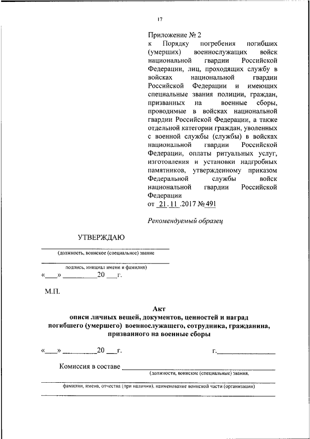 ПРИКАЗ Росгвардии от 21.11.2017 N 491