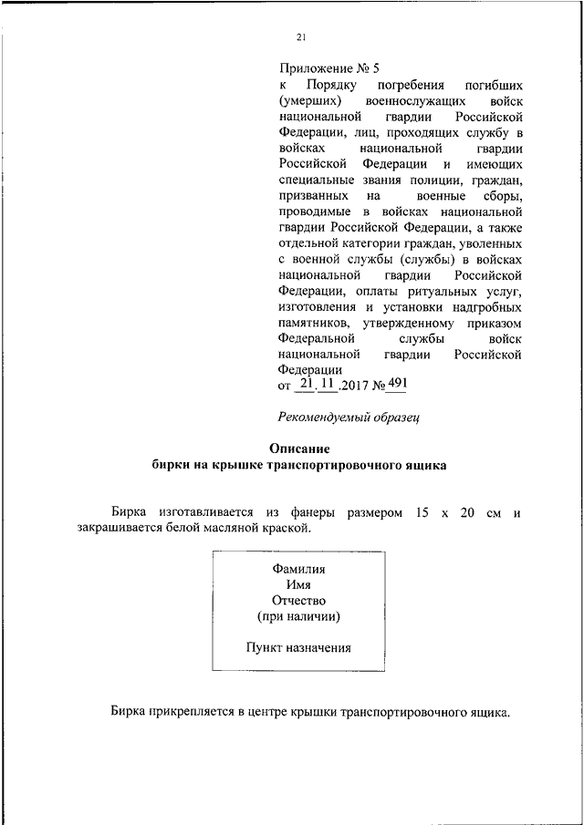ПРИКАЗ Росгвардии от 21.11.2017 N 491