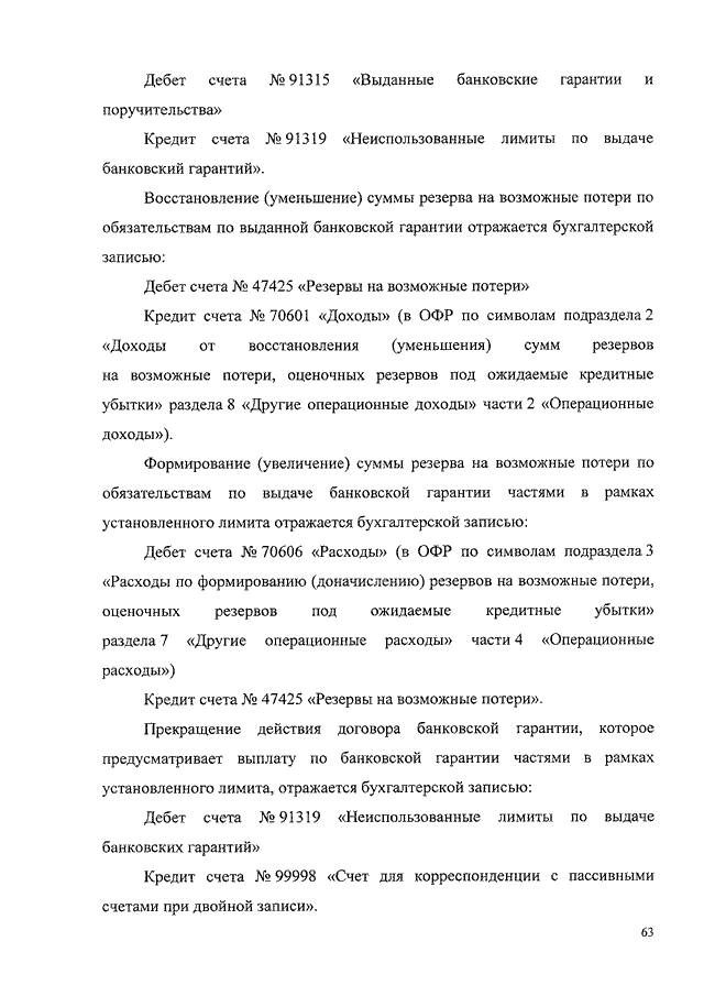 "О ПОРЯДКЕ ОТРАЖЕНИЯ НА СЧЕТАХ БУХГАЛТЕРСКОГО УЧЕТА КРЕДИТНЫМИ ОРГАНИЗАЦИЯМИ ОПЕРАЦИЙ ПО РАЗМЕЩЕНИЮ ДЕНЕЖНЫХ СРЕДСТВ ПО КРЕДИТНЫМ ДОГОВОРАМ, ОПЕРАЦИЙ, СВЯЗАННЫХ С ОСУЩЕСТВЛЕНИЕМ СДЕЛОК ПО ПРИОБРЕТЕНИЮ ПРАВА ТРЕБОВАНИЯ ОТ ТРЕТЬИХ ЛИЦ ИСПОЛНЕНИЯ ОБЯЗАТЕЛЬСТВ В ДЕНЕЖНОЙ ФОРМЕ, ОПЕРАЦИЙ ПО ОБЯЗАТЕЛЬСТВАМ ПО ВЫДАННЫМ БАНКОВСКИМ ГАРАНТИЯМ И ПРЕДОСТАВЛЕНИЮ ДЕНЕЖНЫХ СРЕДСТВ"