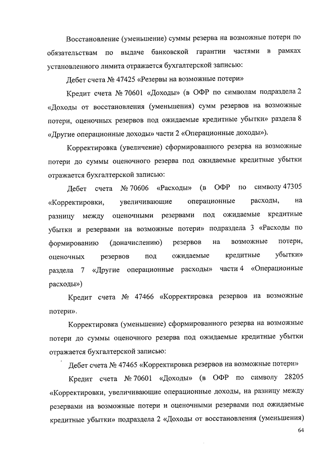 "О ПОРЯДКЕ ОТРАЖЕНИЯ НА СЧЕТАХ БУХГАЛТЕРСКОГО УЧЕТА КРЕДИТНЫМИ ОРГАНИЗАЦИЯМИ ОПЕРАЦИЙ ПО РАЗМЕЩЕНИЮ ДЕНЕЖНЫХ СРЕДСТВ ПО КРЕДИТНЫМ ДОГОВОРАМ, ОПЕРАЦИЙ, СВЯЗАННЫХ С ОСУЩЕСТВЛЕНИЕМ СДЕЛОК ПО ПРИОБРЕТЕНИЮ ПРАВА ТРЕБОВАНИЯ ОТ ТРЕТЬИХ ЛИЦ ИСПОЛНЕНИЯ ОБЯЗАТЕЛЬСТВ В ДЕНЕЖНОЙ ФОРМЕ, ОПЕРАЦИЙ ПО ОБЯЗАТЕЛЬСТВАМ ПО ВЫДАННЫМ БАНКОВСКИМ ГАРАНТИЯМ И ПРЕДОСТАВЛЕНИЮ ДЕНЕЖНЫХ СРЕДСТВ"