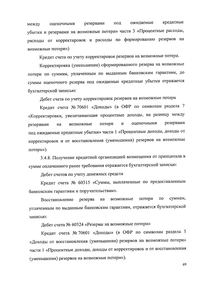 "О ПОРЯДКЕ ОТРАЖЕНИЯ НА СЧЕТАХ БУХГАЛТЕРСКОГО УЧЕТА КРЕДИТНЫМИ ОРГАНИЗАЦИЯМИ ОПЕРАЦИЙ ПО РАЗМЕЩЕНИЮ ДЕНЕЖНЫХ СРЕДСТВ ПО КРЕДИТНЫМ ДОГОВОРАМ, ОПЕРАЦИЙ, СВЯЗАННЫХ С ОСУЩЕСТВЛЕНИЕМ СДЕЛОК ПО ПРИОБРЕТЕНИЮ ПРАВА ТРЕБОВАНИЯ ОТ ТРЕТЬИХ ЛИЦ ИСПОЛНЕНИЯ ОБЯЗАТЕЛЬСТВ В ДЕНЕЖНОЙ ФОРМЕ, ОПЕРАЦИЙ ПО ОБЯЗАТЕЛЬСТВАМ ПО ВЫДАННЫМ БАНКОВСКИМ ГАРАНТИЯМ И ПРЕДОСТАВЛЕНИЮ ДЕНЕЖНЫХ СРЕДСТВ"