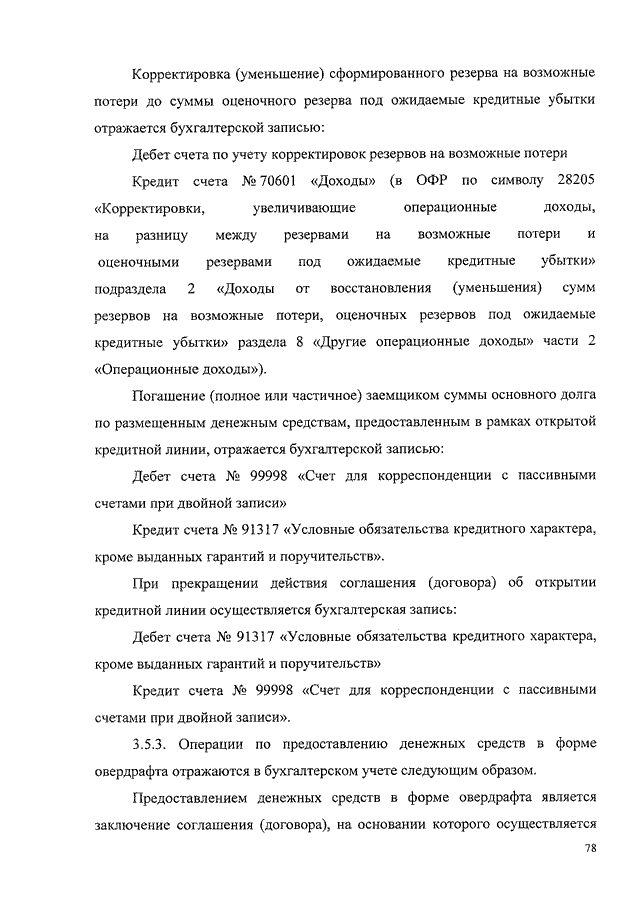 "О ПОРЯДКЕ ОТРАЖЕНИЯ НА СЧЕТАХ БУХГАЛТЕРСКОГО УЧЕТА КРЕДИТНЫМИ ОРГАНИЗАЦИЯМИ ОПЕРАЦИЙ ПО РАЗМЕЩЕНИЮ ДЕНЕЖНЫХ СРЕДСТВ ПО КРЕДИТНЫМ ДОГОВОРАМ, ОПЕРАЦИЙ, СВЯЗАННЫХ С ОСУЩЕСТВЛЕНИЕМ СДЕЛОК ПО ПРИОБРЕТЕНИЮ ПРАВА ТРЕБОВАНИЯ ОТ ТРЕТЬИХ ЛИЦ ИСПОЛНЕНИЯ ОБЯЗАТЕЛЬСТВ В ДЕНЕЖНОЙ ФОРМЕ, ОПЕРАЦИЙ ПО ОБЯЗАТЕЛЬСТВАМ ПО ВЫДАННЫМ БАНКОВСКИМ ГАРАНТИЯМ И ПРЕДОСТАВЛЕНИЮ ДЕНЕЖНЫХ СРЕДСТВ"