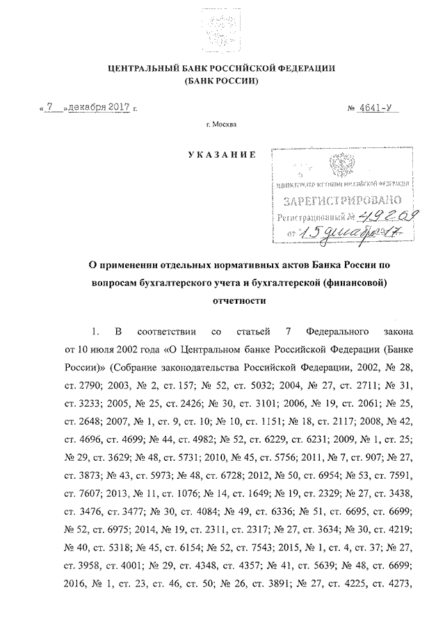 УКАЗАНИЕ ЦБ РФ от 07.12.2017 N 4641-У