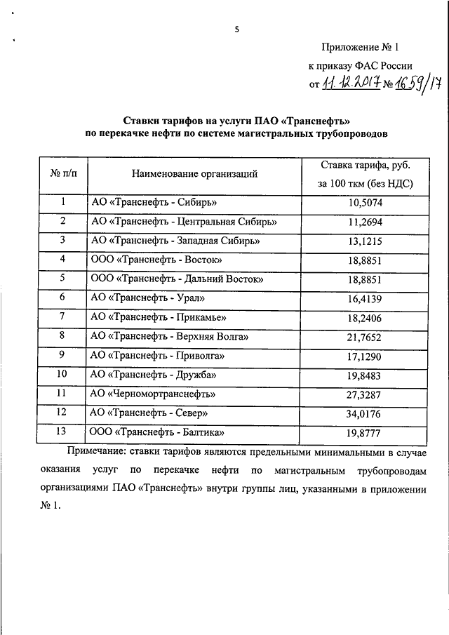 "ОБ УСТАНОВЛЕНИИ ТАРИФОВ НА УСЛУГИ ПАО "ТРАНСНЕФТЬ" ПО ТРАНСПОРТИРОВКЕ НЕФТИ ПО СИСТЕМЕ МАГИСТРАЛЬНЫХ ТРУБОПРОВОДОВ"