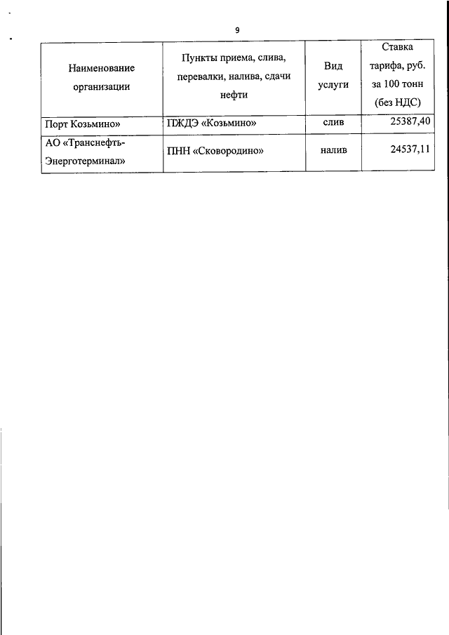 "ОБ УСТАНОВЛЕНИИ ТАРИФОВ НА УСЛУГИ ПАО "ТРАНСНЕФТЬ" ПО ТРАНСПОРТИРОВКЕ НЕФТИ ПО СИСТЕМЕ МАГИСТРАЛЬНЫХ ТРУБОПРОВОДОВ"