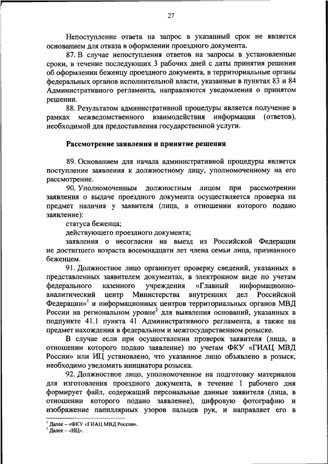 "ОБ УТВЕРЖДЕНИИ АДМИНИСТРАТИВНОГО РЕГЛАМЕНТА МИНИСТЕРСТВА ВНУТРЕННИХ ДЕЛ РОССИЙСКОЙ ФЕДЕРАЦИИ ПО ПРЕДОСТАВЛЕНИЮ ГОСУДАРСТВЕННОЙ УСЛУГИ ПО ОФОРМЛЕНИЮ И ВЫДАЧЕ БЕЖЕНЦУ ПРОЕЗДНОГО ДОКУМЕНТА, СОДЕРЖАЩЕГО ЭЛЕКТРОННЫЙ НОСИТЕЛЬ ИНФОРМАЦИИ"