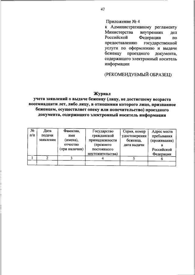 "ОБ УТВЕРЖДЕНИИ АДМИНИСТРАТИВНОГО РЕГЛАМЕНТА МИНИСТЕРСТВА ВНУТРЕННИХ ДЕЛ РОССИЙСКОЙ ФЕДЕРАЦИИ ПО ПРЕДОСТАВЛЕНИЮ ГОСУДАРСТВЕННОЙ УСЛУГИ ПО ОФОРМЛЕНИЮ И ВЫДАЧЕ БЕЖЕНЦУ ПРОЕЗДНОГО ДОКУМЕНТА, СОДЕРЖАЩЕГО ЭЛЕКТРОННЫЙ НОСИТЕЛЬ ИНФОРМАЦИИ"
