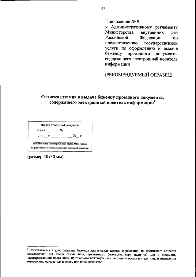 "ОБ УТВЕРЖДЕНИИ АДМИНИСТРАТИВНОГО РЕГЛАМЕНТА МИНИСТЕРСТВА ВНУТРЕННИХ ДЕЛ РОССИЙСКОЙ ФЕДЕРАЦИИ ПО ПРЕДОСТАВЛЕНИЮ ГОСУДАРСТВЕННОЙ УСЛУГИ ПО ОФОРМЛЕНИЮ И ВЫДАЧЕ БЕЖЕНЦУ ПРОЕЗДНОГО ДОКУМЕНТА, СОДЕРЖАЩЕГО ЭЛЕКТРОННЫЙ НОСИТЕЛЬ ИНФОРМАЦИИ"