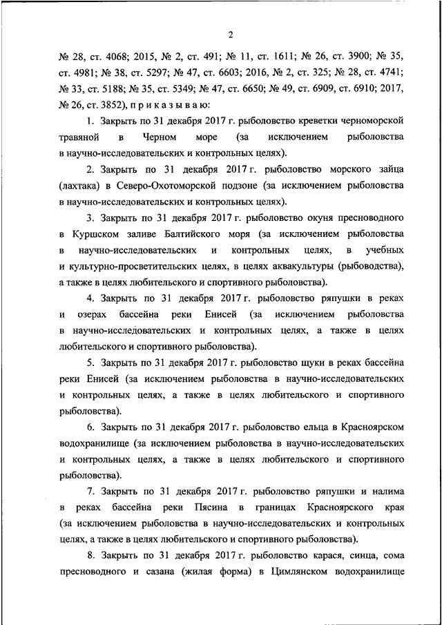 "ОБ УСТАНОВЛЕНИИ ОГРАНИЧЕНИЯ РЫБОЛОВСТВА ОТДЕЛЬНЫХ ВИДОВ ВОДНЫХ БИОЛОГИЧЕСКИХ РЕСУРСОВ В 2017 ГОДУ"