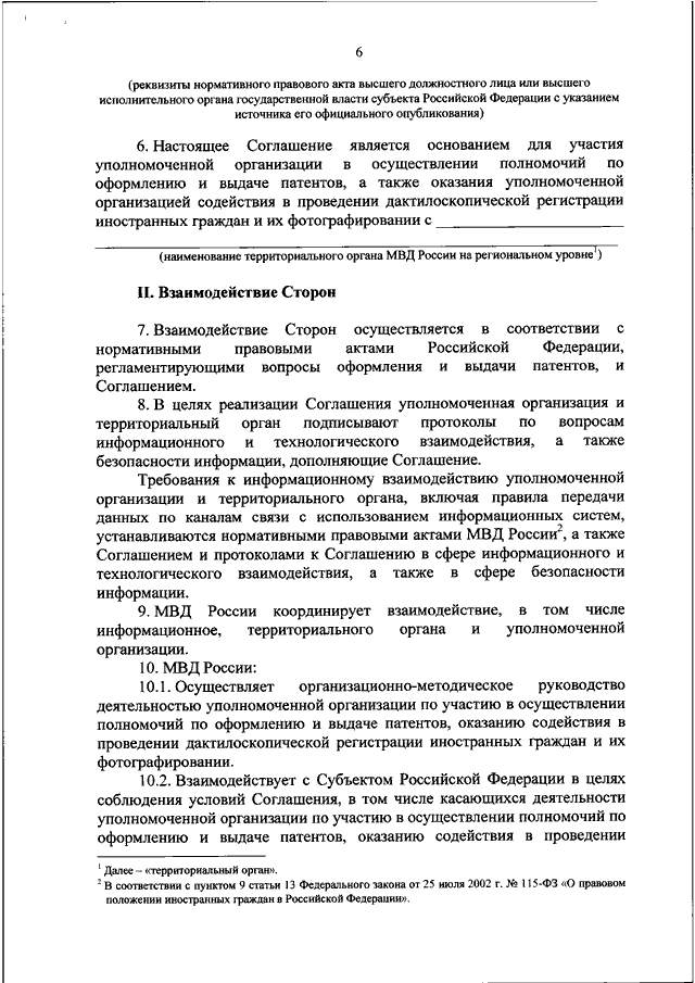 "ОБ УТВЕРЖДЕНИИ ТИПОВОЙ ФОРМЫ СОГЛАШЕНИЯ О ВЗАИМОДЕЙСТВИИ МЕЖДУ МИНИСТЕРСТВОМ ВНУТРЕННИХ ДЕЛ РОССИЙСКОЙ ФЕДЕРАЦИИ И СУБЪЕКТОМ РОССИЙСКОЙ ФЕДЕРАЦИИ, ПРЕДУСМАТРИВАЮЩЕГО УЧАСТИЕ УПОЛНОМОЧЕННОЙ СУБЪЕКТОМ РОССИЙСКОЙ ФЕДЕРАЦИИ ОРГАНИЗАЦИИ В ОСУЩЕСТВЛЕНИИ ПОЛНОМОЧИЙ ПО ПРЕДОСТАВЛЕНИЮ ГОСУДАРСТВЕННОЙ УСЛУГИ ПО ОФОРМЛЕНИЮ И ВЫДАЧЕ ИНОСТРАННЫМ ГРАЖДАНАМ И ЛИЦАМ БЕЗ ГРАЖДАНСТВА ПАТЕНТОВ"