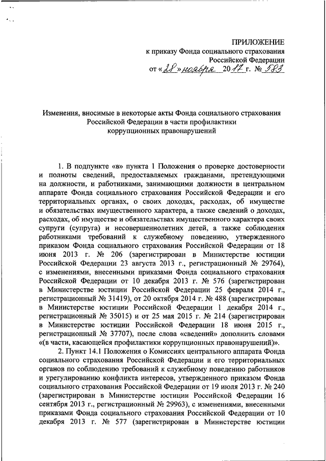ПРИКАЗ ФСС РФ от 28.11.2017 N 583