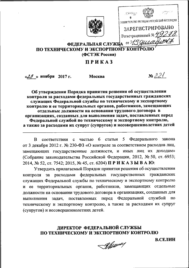 ПРИКАЗ ФСТЭК РФ от 29.11.2017 N 221