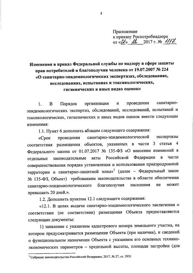 "О ВНЕСЕНИИ ИЗМЕНЕНИЙ В ПРИКАЗ ФЕДЕРАЛЬНОЙ СЛУЖБЫ ПО НАДЗОРУ В СФЕРЕ ЗАЩИТЫ ПРАВ ПОТРЕБИТЕЛЕЙ И БЛАГОПОЛУЧИЯ ЧЕЛОВЕКА ОТ 19.07.2007 N 224 "О САНИТАРНО - ЭПИДЕМИОЛОГИЧЕСКИХ ЭКСПЕРТИЗАХ, ОБСЛЕДОВАНИЯХ, ИССЛЕДОВАНИЯХ, ИСПЫТАНИЯХ И ТОКСИКОЛОГИЧЕСКИХ, ГИГИЕНИЧЕСКИХ И ИНЫХ ВИДАХ ОЦЕНОК"
