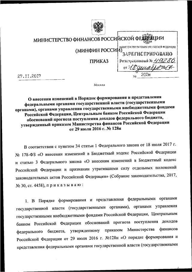 ПРИКАЗ Минфина РФ от 27.11.2017 N 202н