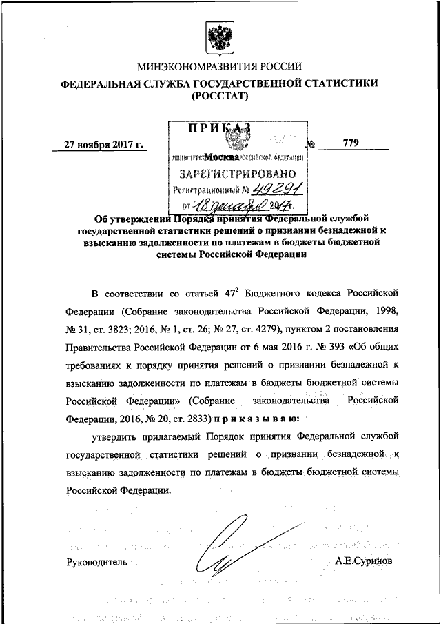 ПРИКАЗ Росстата от 27.11.2017 N 779