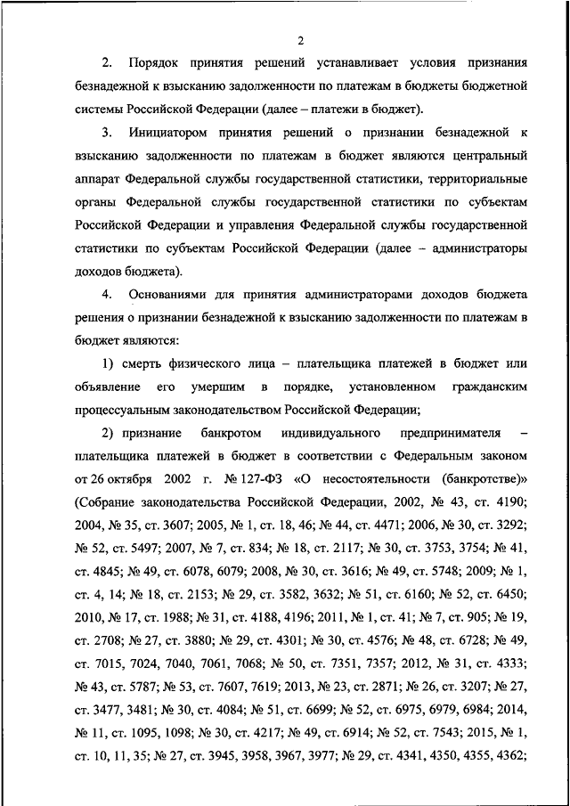 "ОБ УТВЕРЖДЕНИИ ПОРЯДКА ПРИНЯТИЯ ФЕДЕРАЛЬНОЙ СЛУЖБОЙ ГОСУДАРСТВЕННОЙ СТАТИСТИКИ РЕШЕНИЙ О ПРИЗНАНИИ БЕЗНАДЕЖНОЙ К ВЗЫСКАНИЮ ЗАДОЛЖЕННОСТИ ПО ПЛАТЕЖАМ В БЮДЖЕТЫ БЮДЖЕТНОЙ СИСТЕМЫ РОССИЙСКОЙ ФЕДЕРАЦИИ"