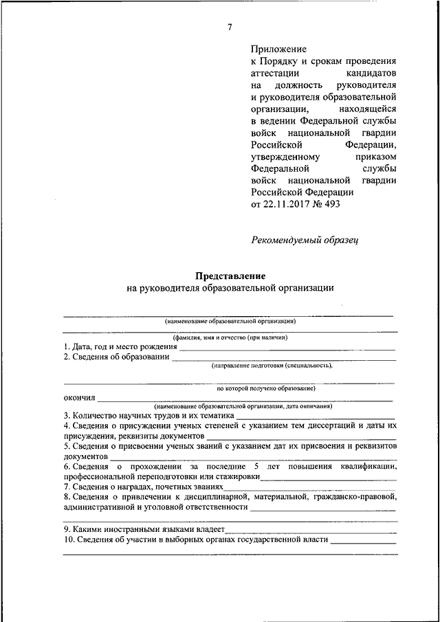 ПРИКАЗ Росгвардии от 22.11.2017 N 493