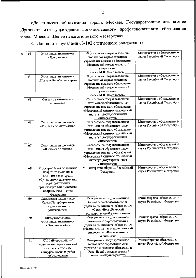"О ВНЕСЕНИИ ИЗМЕНЕНИЙ В ПЕРЕЧЕНЬ ОЛИМПИАД И ИНЫХ ИНТЕЛЛЕКТУАЛЬНЫХ И (ИЛИ) ТВОРЧЕСКИХ КОНКУРСОВ, МЕРОПРИЯТИЙ, НАПРАВЛЕННЫХ НА РАЗВИТИЕ ИНТЕЛЛЕКТУАЛЬНЫХ И ТВОРЧЕСКИХ СПОСОБНОСТЕЙ, СПОСОБНОСТЕЙ К ЗАНЯТИЯМ ФИЗИЧЕСКОЙ КУЛЬТУРОЙ И СПОРТОМ, ИНТЕРЕСА К НАУЧНОЙ (НАУЧНО - ИССЛЕДОВАТЕЛЬСКОЙ), ТВОРЧЕСКОЙ, ФИЗКУЛЬТУРНО - СПОРТИВНОЙ ДЕЯТЕЛЬНОСТИ, А ТАКЖЕ НА ПРОПАГАНДУ НАУЧНЫХ ЗНАНИЙ, ТВОРЧЕСКИХ И СПОРТИВНЫХ ДОСТИЖЕНИЙ, НА 2016/17 УЧЕБНЫЙ ГОД, УТВЕРЖДЕННЫЙ ПРИКАЗОМ МИНИСТЕРСТВА ОБРАЗОВАНИЯ И НАУКИ РОССИЙСКОЙ ФЕДЕРАЦИИ ОТ 31 МАЯ 2016 Г. N 645"
