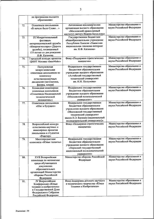 "О ВНЕСЕНИИ ИЗМЕНЕНИЙ В ПЕРЕЧЕНЬ ОЛИМПИАД И ИНЫХ ИНТЕЛЛЕКТУАЛЬНЫХ И (ИЛИ) ТВОРЧЕСКИХ КОНКУРСОВ, МЕРОПРИЯТИЙ, НАПРАВЛЕННЫХ НА РАЗВИТИЕ ИНТЕЛЛЕКТУАЛЬНЫХ И ТВОРЧЕСКИХ СПОСОБНОСТЕЙ, СПОСОБНОСТЕЙ К ЗАНЯТИЯМ ФИЗИЧЕСКОЙ КУЛЬТУРОЙ И СПОРТОМ, ИНТЕРЕСА К НАУЧНОЙ (НАУЧНО - ИССЛЕДОВАТЕЛЬСКОЙ), ТВОРЧЕСКОЙ, ФИЗКУЛЬТУРНО - СПОРТИВНОЙ ДЕЯТЕЛЬНОСТИ, А ТАКЖЕ НА ПРОПАГАНДУ НАУЧНЫХ ЗНАНИЙ, ТВОРЧЕСКИХ И СПОРТИВНЫХ ДОСТИЖЕНИЙ, НА 2016/17 УЧЕБНЫЙ ГОД, УТВЕРЖДЕННЫЙ ПРИКАЗОМ МИНИСТЕРСТВА ОБРАЗОВАНИЯ И НАУКИ РОССИЙСКОЙ ФЕДЕРАЦИИ ОТ 31 МАЯ 2016 Г. N 645"
