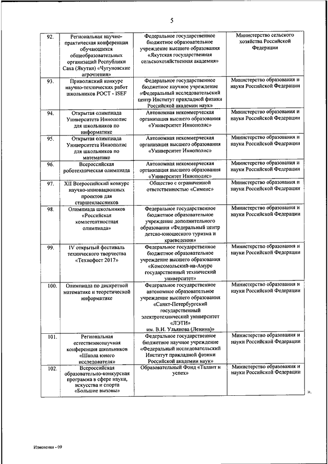 "О ВНЕСЕНИИ ИЗМЕНЕНИЙ В ПЕРЕЧЕНЬ ОЛИМПИАД И ИНЫХ ИНТЕЛЛЕКТУАЛЬНЫХ И (ИЛИ) ТВОРЧЕСКИХ КОНКУРСОВ, МЕРОПРИЯТИЙ, НАПРАВЛЕННЫХ НА РАЗВИТИЕ ИНТЕЛЛЕКТУАЛЬНЫХ И ТВОРЧЕСКИХ СПОСОБНОСТЕЙ, СПОСОБНОСТЕЙ К ЗАНЯТИЯМ ФИЗИЧЕСКОЙ КУЛЬТУРОЙ И СПОРТОМ, ИНТЕРЕСА К НАУЧНОЙ (НАУЧНО - ИССЛЕДОВАТЕЛЬСКОЙ), ТВОРЧЕСКОЙ, ФИЗКУЛЬТУРНО - СПОРТИВНОЙ ДЕЯТЕЛЬНОСТИ, А ТАКЖЕ НА ПРОПАГАНДУ НАУЧНЫХ ЗНАНИЙ, ТВОРЧЕСКИХ И СПОРТИВНЫХ ДОСТИЖЕНИЙ, НА 2016/17 УЧЕБНЫЙ ГОД, УТВЕРЖДЕННЫЙ ПРИКАЗОМ МИНИСТЕРСТВА ОБРАЗОВАНИЯ И НАУКИ РОССИЙСКОЙ ФЕДЕРАЦИИ ОТ 31 МАЯ 2016 Г. N 645"
