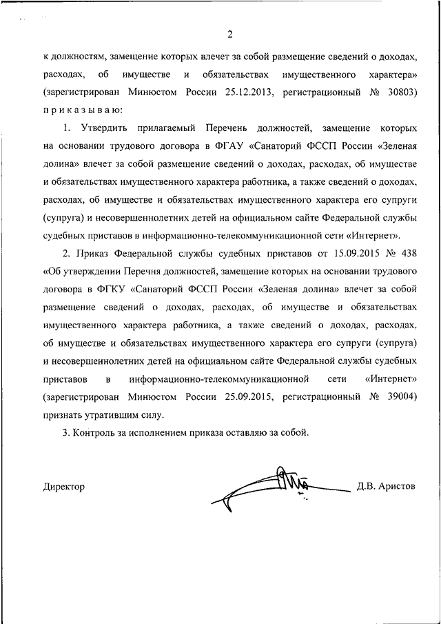 "ОБ УТВЕРЖДЕНИИ ПЕРЕЧНЯ ДОЛЖНОСТЕЙ, ЗАМЕЩЕНИЕ КОТОРЫХ НА ОСНОВАНИИ ТРУДОВОГО ДОГОВОРА В ФГАУ "САНАТОРИЙ ФССП РОССИИ "ЗЕЛЕНАЯ ДОЛИНА" ВЛЕЧЕТ ЗА СОБОЙ РАЗМЕЩЕНИЕ СВЕДЕНИЙ О ДОХОДАХ, РАСХОДАХ, ОБ ИМУЩЕСТВЕ И ОБЯЗАТЕЛЬСТВАХ ИМУЩЕСТВЕННОГО ХАРАКТЕРА РАБОТНИКА, А ТАКЖЕ СВЕДЕНИЙ О ДОХОДАХ, РАСХОДАХ, ОБ ИМУЩЕСТВЕ И ОБЯЗАТЕЛЬСТВАХ ИМУЩЕСТВЕННОГО ХАРАКТЕРА ЕГО СУПРУГИ (СУПРУГА) И НЕСОВЕРШЕННОЛЕТНИХ ДЕТЕЙ НА ОФИЦИАЛЬНОМ САЙТЕ ФЕДЕРАЛЬНОЙ СЛУЖБЫ СУДЕБНЫХ ПРИСТАВОВ В ИНФОРМАЦИОННО - ТЕЛЕКОММУНИКАЦИОННОЙ СЕТИ "ИНТЕРНЕТ"